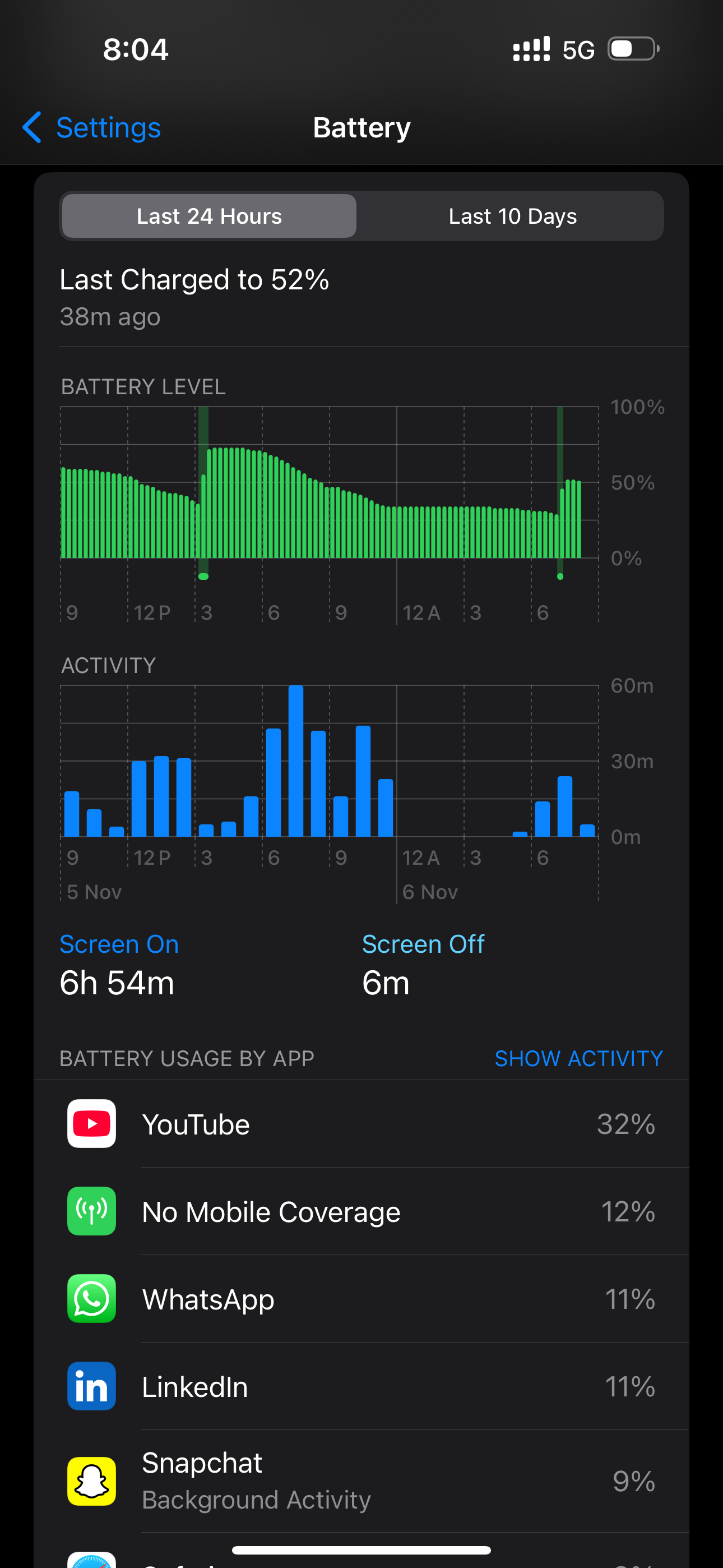 Kindly share last 24 hours battery page screenshot bro. with apps section visible showing top 3 or 4 apps.